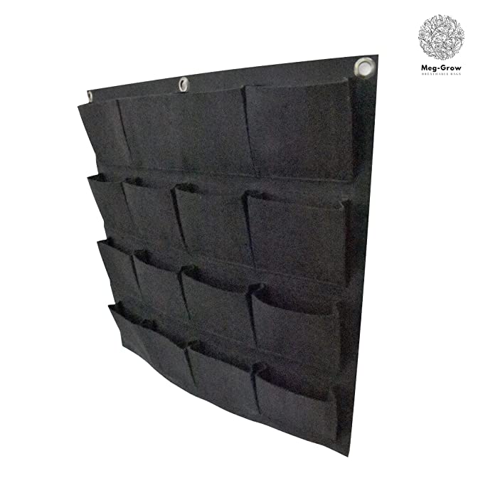SYUTAM Non-Woven Felt Fabric Wall Planter for Gardening, Plants, Flowers, Suitable for Indoor and Outdoor (Black 16-Pockets