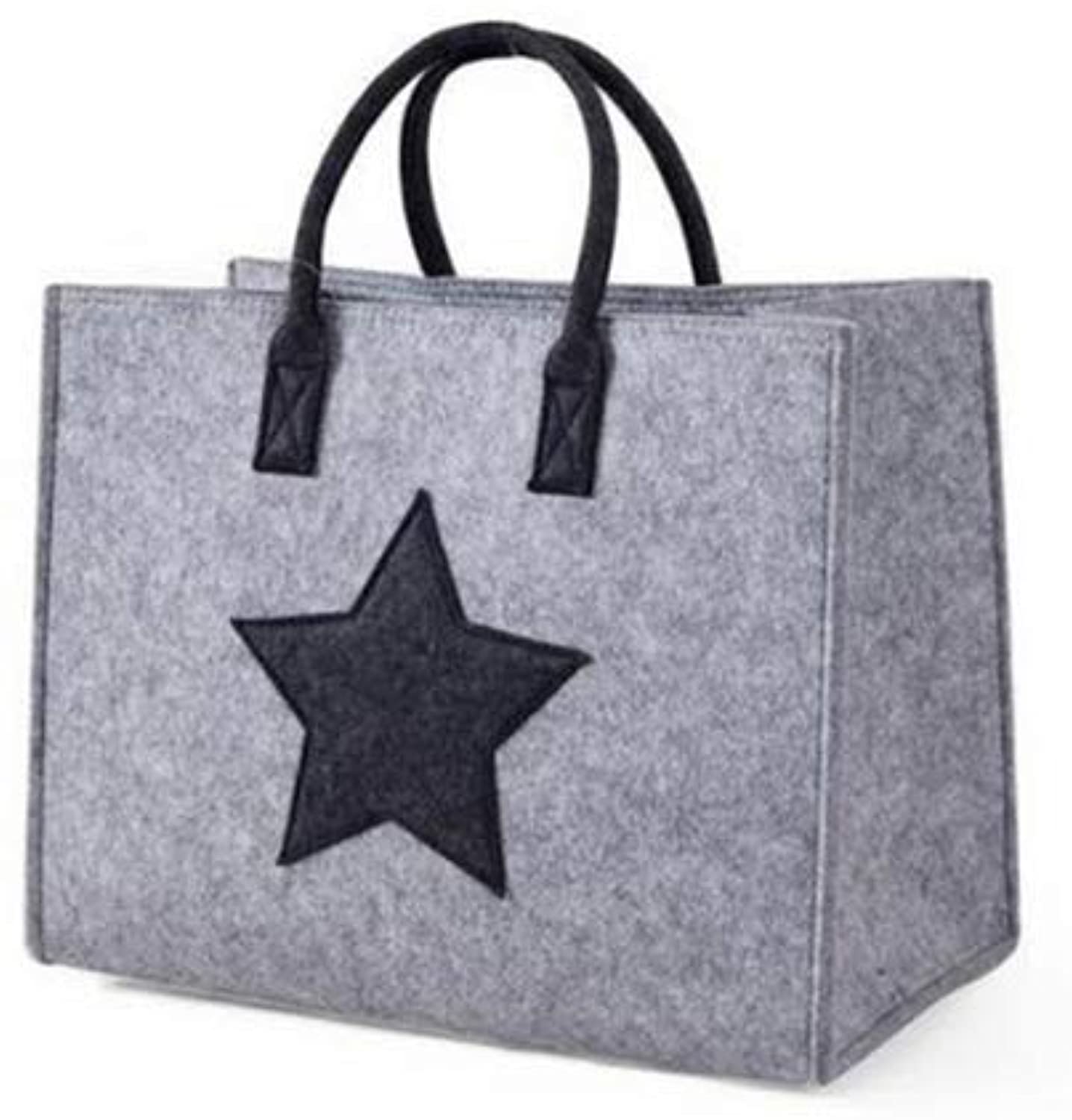 SYUTAM Reusable Shopping Bag, Felt Storage Tote Utility Bag with White Star and Handles | Work, Beach, Travel, Newspaper, Magazine, Toy, Clothes