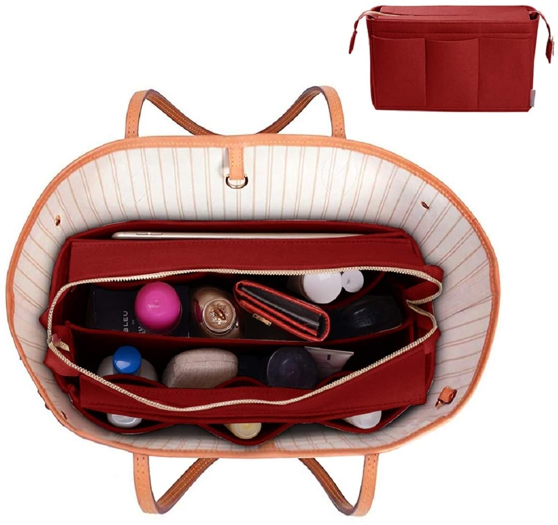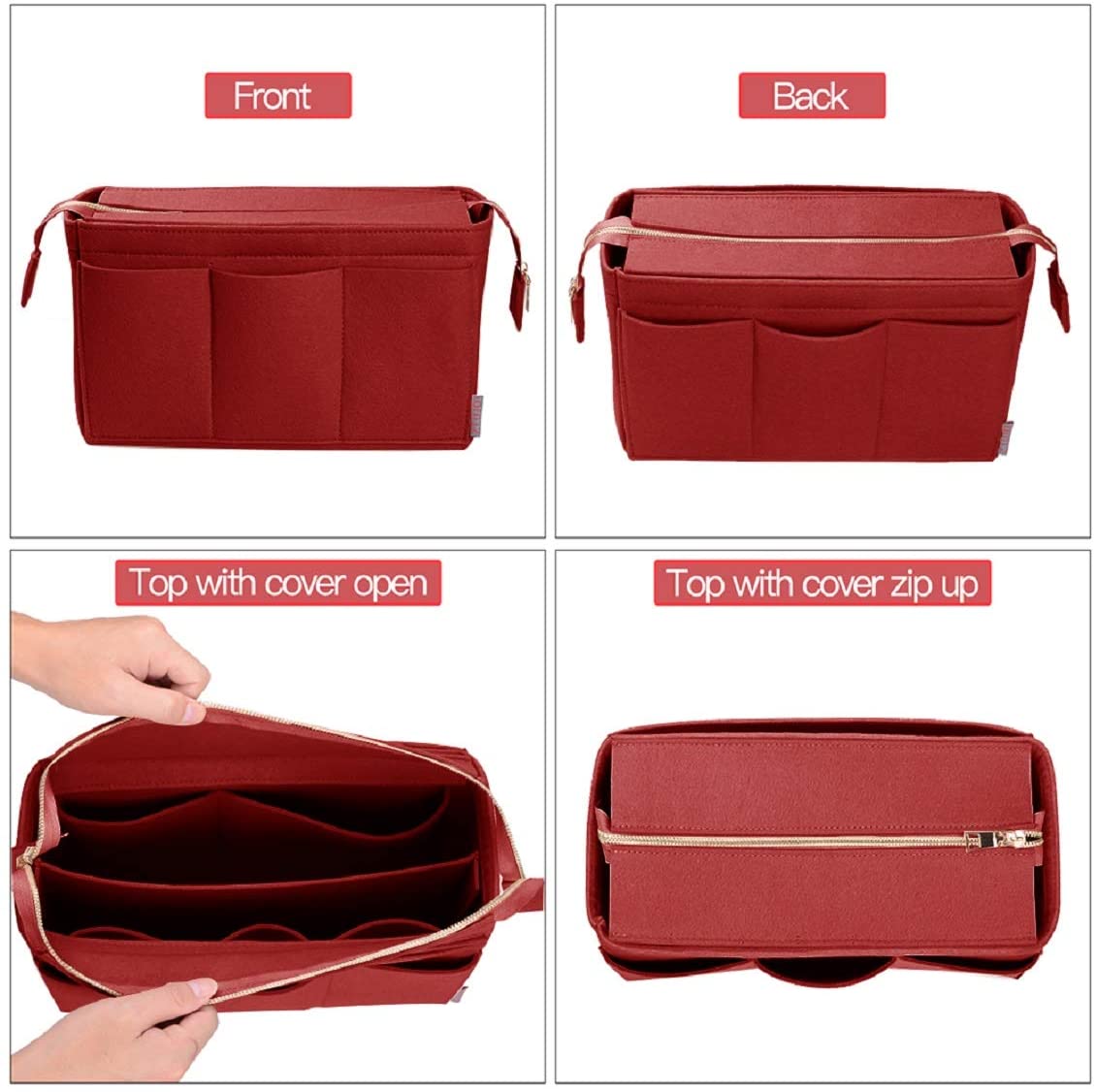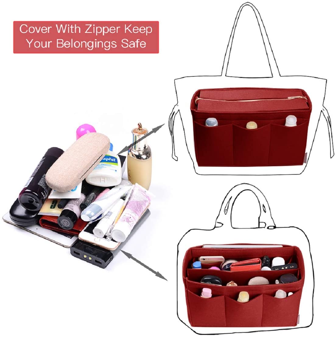 SYUTAM Women Felt Purse Organizer Insert for Ladies Handbag,Shoulder Hobo Bag Multiple Storage Compartment with Detachable Zipper Cover