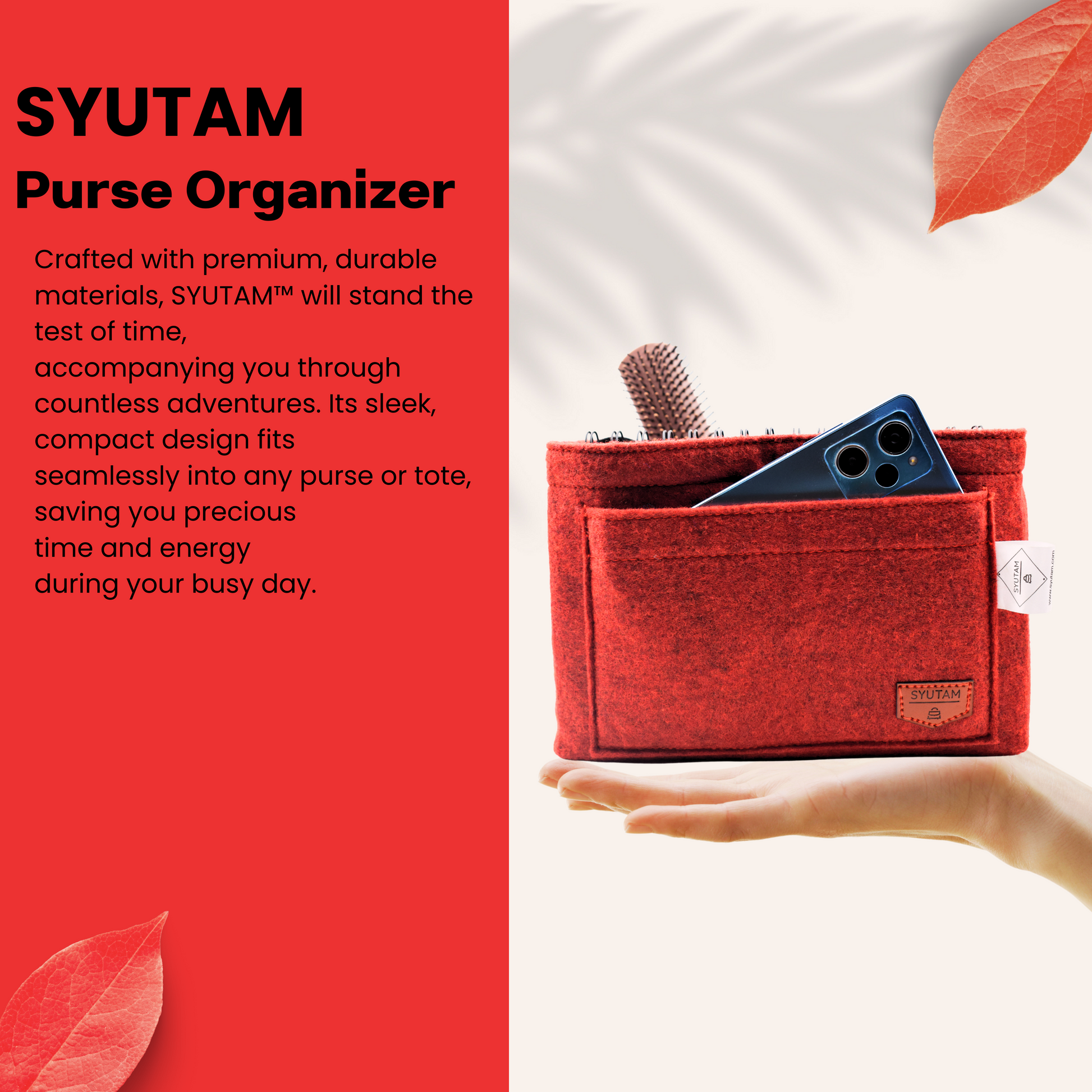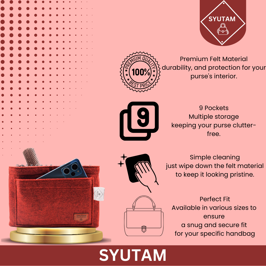 Effortlessly organize your essentials with SYUTAM's Women Felt Purse Organizer. Made with premium felt material, it offers customizable compartments for a clutter-free handbag. With open-top convenience, switching between purses is a breeze. Chic and versatile, it's the perfect accessory for travel, work, or daily life.